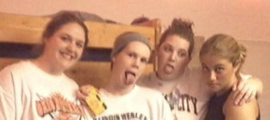 This is Katie, EDubb, Me, and Karen. We had just got done swimming in the hotel pool with our practice gear on. We didn't want to get our rooms wet so we took off all our clothes right there :) Yeah and those towels... not helpful |